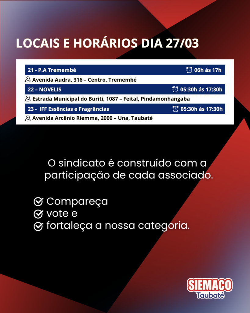 🗳️ ELEIÇÕES SINDICAIS DIA 27/03